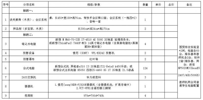 附表二:國貿(mào)專業(yè)振興計劃項目2014年度實驗室硬件招標(biāo)參數(shù)
