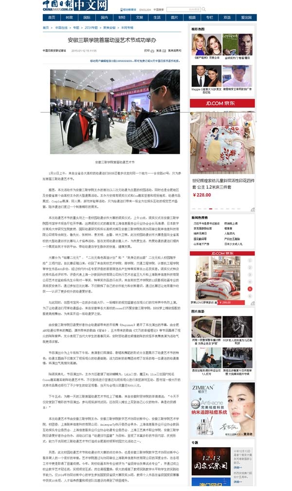 中國日報報道鏈接:http://cnews.chinadaily.com.cn/jjah/2015-01/12/content_19297280.htm