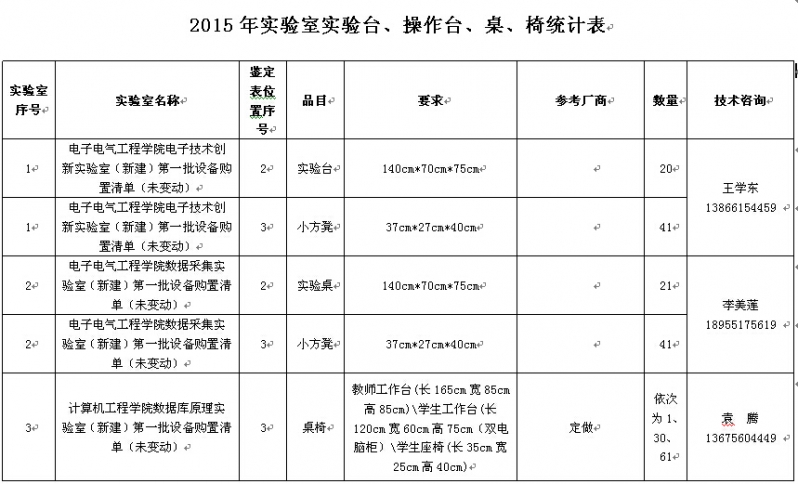 2015年實(shí)驗(yàn)室實(shí)驗(yàn)臺(tái)、操作臺(tái)、桌、椅統(tǒng)計(jì)表附件: