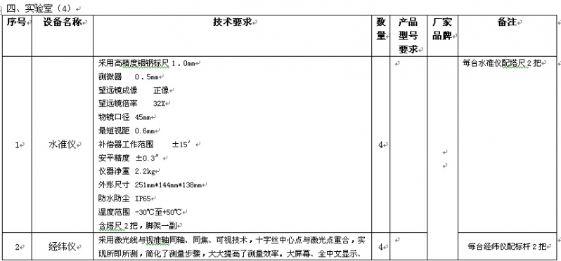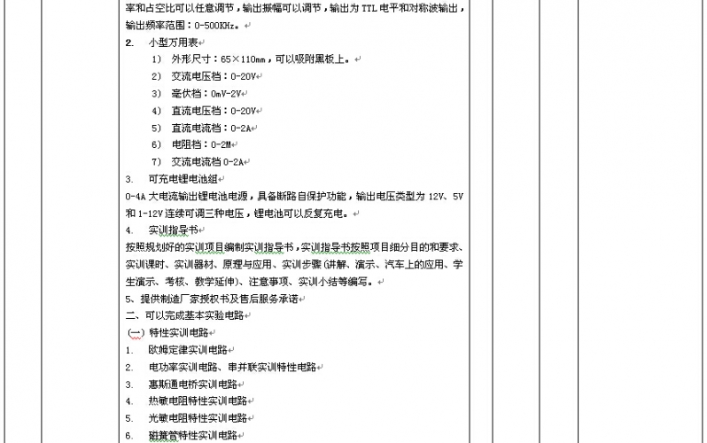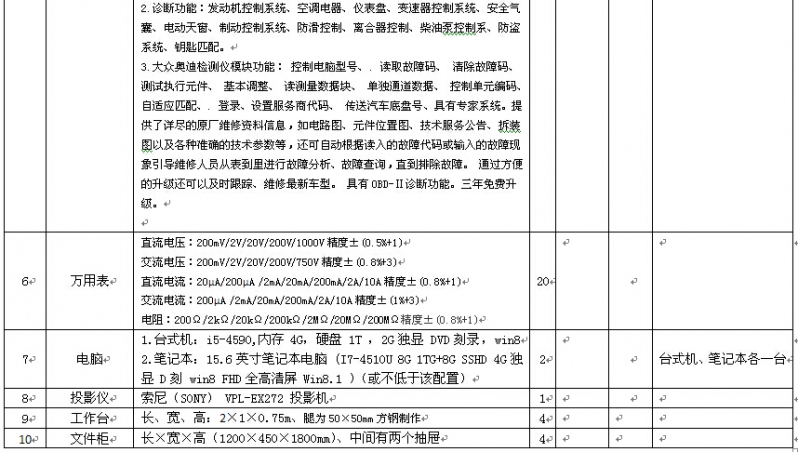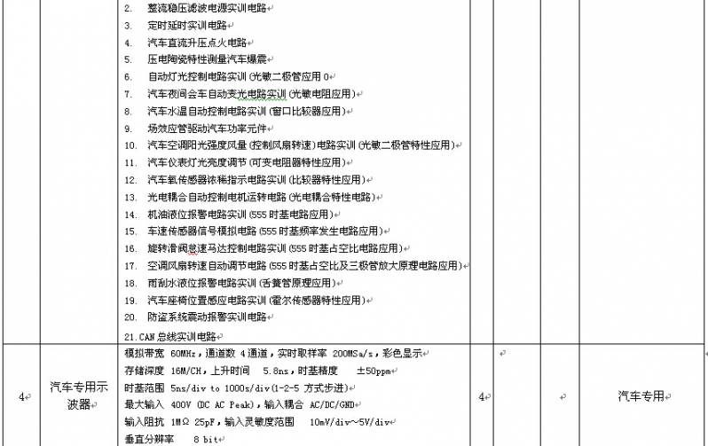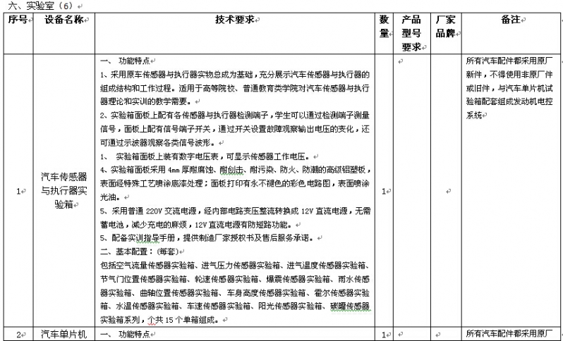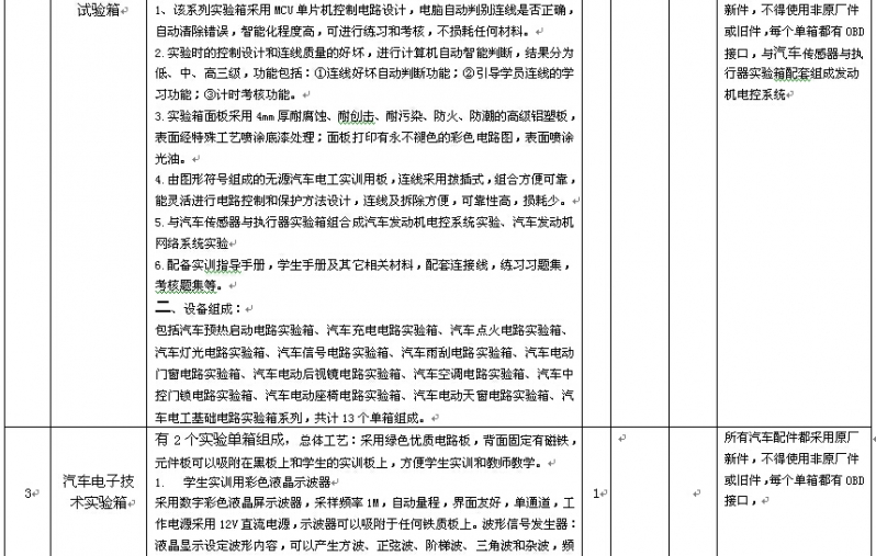 二、招標項目:交通學院實驗設備(包含工程訓練中心、汽車電子實驗室、車輛安全工程實驗室、汽車安全環(huán)保檢測實驗室、道路測量工程實驗室、安防綜合實驗室6個實驗室,詳細參數(shù)見附件)。
