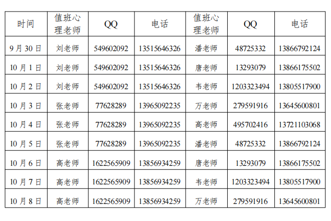 請有輔導(dǎo)需求的同學(xué),使用本人QQ號實名添加值班心理老師QQ號(添加好友時必須備注姓名、學(xué)號和專業(yè)班級等信息)。值班心理老師在接到來訪者的好友申請后,經(jīng)審核信息無誤后將驗證好友通過,之后根據(jù)具體情況幫同學(xué)安排心理輔導(dǎo)事宜?;蛘咧苯訐艽蛑蛋嘈睦砝蠋熾娫挵才判睦磔o導(dǎo)事宜。