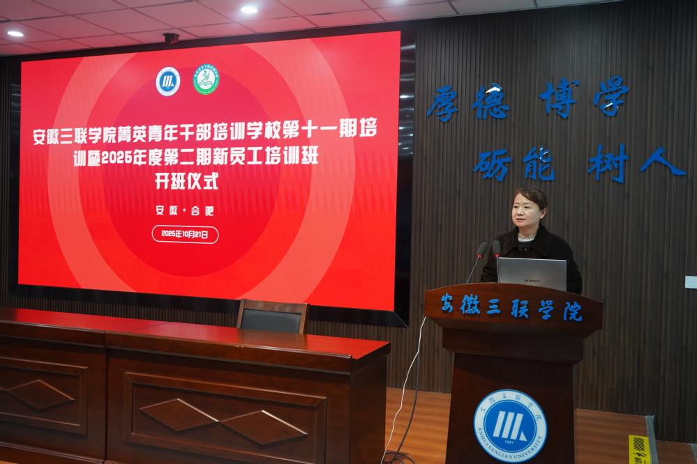 為幫助新入職員工盡快融入校園、明確崗位職責、提升職業(yè)素養(yǎng),10月21日,安徽三聯(lián)學院在B01學術報告廳舉行青年干部培訓學校第十一期培訓暨2025年度第二期新員工培訓班開班儀式。副校長洪梅,教務處、科研處、國際合作交流中心負責人及全體新入職員工參加。