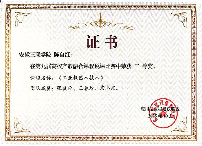 在說課比賽環(huán)節(jié),我校現(xiàn)代康養(yǎng)產(chǎn)業(yè)學(xué)院陳自紅、張曉玲、王春玲教師團(tuán)隊(duì)主講的《工業(yè)機(jī)器人技術(shù)》課程,憑借其創(chuàng)新的“雙元共育+四有課堂”教學(xué)模式,從眾多參賽課程中脫穎而出,榮獲全國二等獎(jiǎng)。