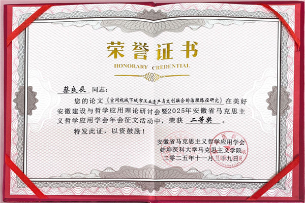 會議期間,安徽省社科聯(lián)秘書長韓修良強調(diào),要深入探討馬克思主義哲學(xué)的實踐偉力與應(yīng)用路徑,為現(xiàn)代化美好安徽建設(shè)貢獻理論智慧。學(xué)會會長黃洪雷作工作報告,表示將緊扣“十五五”規(guī)劃核心目標,推動馬克思主義哲學(xué)在新時代的創(chuàng)新應(yīng)用。我校青年教師蔡良辰撰寫的論文榮獲本次年會征文活動二等獎。