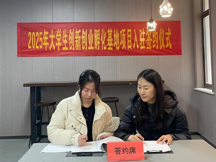 12月4日,我校2025年大學生創(chuàng)新創(chuàng)業(yè)孵化基地項目入駐簽約儀式在基地舉行。副校長洪梅、“啟航團”(創(chuàng)新創(chuàng)業(yè)學生團隊)成員代表參加儀式。儀式由就業(yè)創(chuàng)業(yè)處負責人主持。