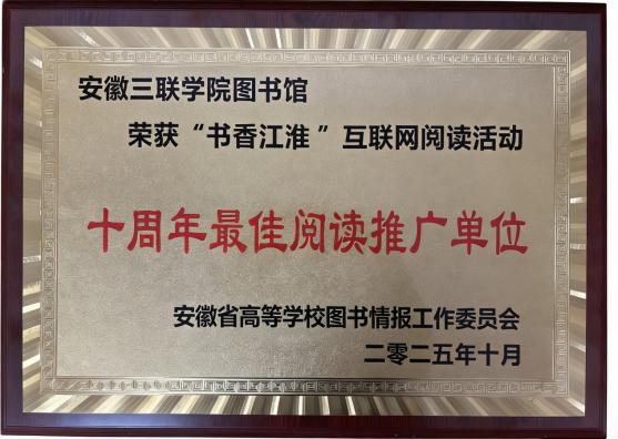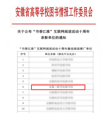 近日,由安徽省高等學(xué)校圖書情報工作委員會主辦的“書香江淮”互聯(lián)網(wǎng)閱讀活動十周年線下紀念活動在宿州市舉行,我校圖書館榮獲“十周年最佳閱讀推廣單位”稱號。