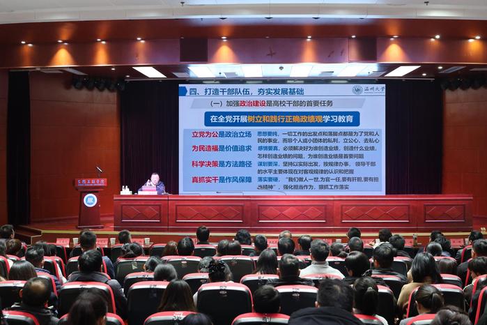 學(xué)校領(lǐng)導(dǎo)、黨委班子成員、中層副職及以上管理干部、院級(jí)黨委書(shū)記、副書(shū)記、專職組織員,師生黨支部書(shū)記等150余人參加報(bào)告會(huì)。(撰稿:孟海云 攝影:常雨豪 編輯:柯嫦女)